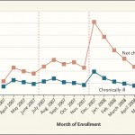 We examined these data for the period from March 2007 (the date of the first available reliable information on people with incomes in the relevant range) through June 2008 (the last month for which we could calculate our 12-month measure of chronic illness). In each month, we measured the health of the enrollees who joined the program.